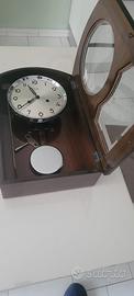 orologio da parete meccanico cassa in legno noce scuro vendo come si presenta in foto da verificare il funzionamento perché non funzionale presenta segni di usura e abrasioni dovuto al tempo vedi foto per collezionismo o fai da te misura 42x28x11