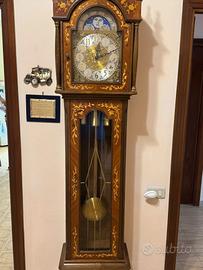 Privato vende splendido orologio a pendolo a colonna della storica casa Melux (Appiano sulla Strada del Vino), risalente agli anni '80. Un pezzo d'arredo di grande eleganza, perfetto per saloni classici, studi professionali o amanti del vintage di qualità. Caratteristiche principali: Meccanismo: Meccanico a carica manuale tramite tre pesi in ottone. Funzioni: Quadrante con numeri romani/arabi, complicazione delle fasi lunari perfettamente funzionante e indicazione del tempo "Tempus Fugit". Estetica: Cassa in legno pregiato con raffinati intarsi floreali realizzati a mano su più livelli. Vetrate frontali e laterali integre che permettono di ammirare il movimento del pendolo e dei pesi. Suoneria: Rintocchi armonici (melodia Westminster o similare). Stato dell’oggetto: L'orologio è stato conservato con estrema cura. Il ticchettio è regolare, ben graduato e non "zoppicante". Nota tecnica sulla suoneria: Attualmente il peso della suoneria è fermo in alto poiché la funzione è stata disattivata intenzionalmente per mantenere il silenzio in casa. Il meccanismo è integro e può essere riattivato semplicemente ripristinando il consenso della suoneria. Documentazione: L’orologio è accompagnato dal suo certificato di garanzia originale Melux dell’epoca, che ne attesta l’autenticità e la provenienza.