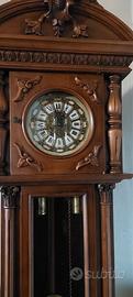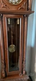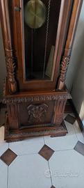 meraviglioso orologio a pendolo, in legno stile antico.altezza m.2,10 larghezza base cm.57 corpo centrale cm40 testa cm57. con ancora il libretto delle istruzioni . Fermo da tempo, da revisionare.