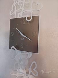 Vendo stumendo orologio a pendolo bianco è composto da tre parti. La prima, di forma rettangolare, costituisce la base dell'orologio che ospita il meccanismo a pendolo. La seconda parte è il quadrante. La terza parte è il pendolo. Il risultato è una composizione stupenda che si adatta perfettamente a diversi stili di arredamento.