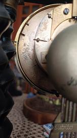 Vendo antico orologio da mensola in legno ebanizzato con struttura architettonica a portico, sorretta da quattro montanti a colonna a torciglioni. Quadrante in smalto bianco con numeri romani, grandi lancette a freccia in bronzo dorato. Nelle foto si può vedere la firma della casa di restauro V. Rousseau.