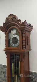 Splendido orologio a pendolo da terra in legno massello di pregio, dalle linee eleganti e maestose che donano un tocco di classe senza tempo a qualsiasi ambiente. Questo pezzo di grande fascino unisce l'artigianalità tradizionale alla precisione meccanica.
