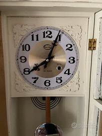 Vendesi splendido orologio a pendolo da parete vintage, modello "Three Star" con carica 31 giorni. L'orologio presenta una raffinata finitura bianca decapé (shabby chic) che lo rende un pezzo d'arredo elegante sia per ambienti classici che moderni.