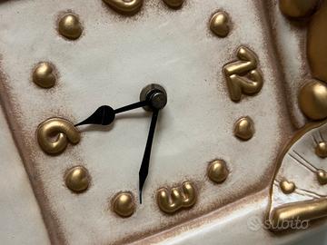 Orologio a pendolo in ceramica decorata a mano, linea angeli. Originale e perfettamente funzionante. Regalo in più macchinina sempre marchio Thun