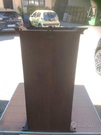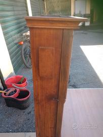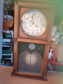 Elegante orologio a pendolo VINTAGE IN legno con quadrante in metallo e vetro decorato stile arte Decò. Funzionante meccanico a doppia carica (una x l orologio e una x il suono delle ore) ottimo come pezzo d arredo o per collezionisti di orologi d epoca,in ottime condizioni generali d uso, misure cm 34x16x64 altezza ritiro Milano crescenzago