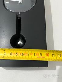 Orologio vintage a pendolo Daruma Design UK. Realizzato in plastica nera e metallo cromato. In ottimo stato nonostante l’età.