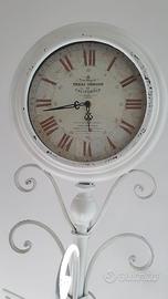 Vendo orologio da terra in ferro battuto bianco, con struttura decorativa e base stabile a 4 piedi.