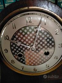 Orologio a pendolo, Anni 1950 marca Bentima Funzionante, compreso di pendolo e chiave Ha la carica di settimanale e la suoneria a gong sulla mezzora e sulle ore. Misure in cm (hxlxp): 21x22x13 (circa) Roma nord (Flaminio). Cell.3921005434