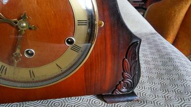 Orologio camino a pendolo Anni 1940 marca Bentima Funzionante, compresa chiave. Ha la carica settimanale e ha la suoneria a westminster sui quarti di ora e sulle ore Misure in cm (hxlxp): 24x33x12(circa) Roma nord (Fla-minio). Cell.3921005434