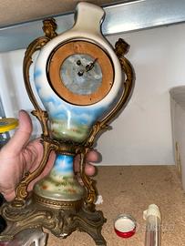 Vendo bellissimo orologio da tavolo in porcellana, finemente decorato con tema romantico, completo di meccanismo.