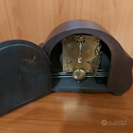 Orologio antico in legno, movimento a pendolo, misure orologio 29x20x11.