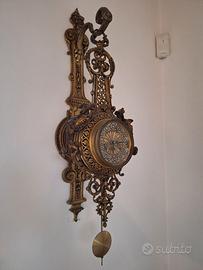 Orologio a pendolo da muro, fusione tedesca di inizio 900. Funzionante con la sua chiave in dotazione. Ritiro sul posto.