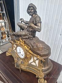 antico orologio con piedi ornamentato e decorato su fui siete un cavaliere, in buome condizioni malgrado l' età.