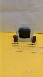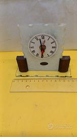 Orologio artigianale da tavolo, quadrante con numeri romani, dimensione base cm 14 * 4, altezza 12,5 cm, perfettamente funzionante - come da foto - [qw 9463] -
