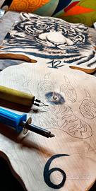 Tecnica: Pirografia (incisione a fuoco).