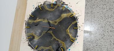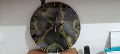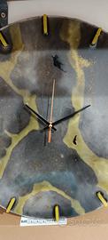 vendo orologio artigianale in resina epossidica base in MDF 41 X 41 cm nero e oro