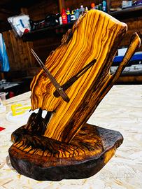 Orologio artigianale in ulivo sardo , interamente fatto a mano … pezzo da collezione .