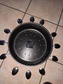 ideato e realizzato a mano con oggetti di recupero...creato con una teglia da forno e cucchiai da cucina in acciaio...misura 50 cm...perfettamente funzionante....ideale x cucine o arredi simili.....mi è stato regalato che non funzionava e chiedo solo le spesa di pulizia e riparazione