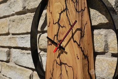 Orologio da parete realizzato a mano, dove le venature naturali del legno incontrano le bruciature artigianali e diventano design. Ogni creazione è unica e pensata per dare carattere e stile unico ai tuoi ambienti.