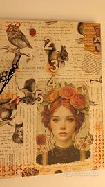 Creato con la tecnica del découpage e decori con pittura acrilica.
