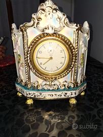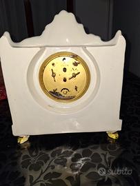 orologio barocco in porcellana epoca 900 con decori in oro e piedi leoni 30 x 25 perfettamente funzionate, solo da rivedere la carica della sveglia