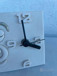 Orologio da tavolo al quarzo marca Bongelli Preziosi MADE IN ITALY, disegno in rilievo con dettaglio argentato e 3 lancette nere; funzionante (con pila stilo AA non inclusa), ben conservato condizioni ottime.