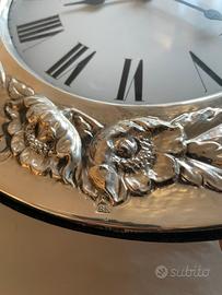 Diametro 33 cm. Fascia in argento di cm 5,5. Marcato e punzonato. Orologio funzionante.