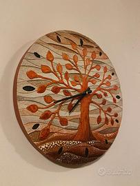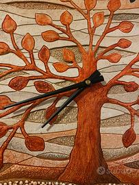 OROLOGIO REALIZZATO A MANO DAL LABORATORIO CARTAPIETRA DI GAZZO VERONESE RAFFIGURANTE ALBERO DELLA VITA NELLE TONALITA' ARANCIO+MARRONE+BEIGE.