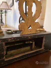 Il mobile è in legno ebanizzato e parzialmente dorato.