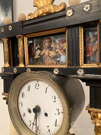 Si tratta di un orologio da tavolo a tempietto Biedermeier, probabilmente di manifattura viennese intorno al 1830.