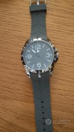 orologio con cassa in acciaio e cinturino in gomma funzionante come nuovo.