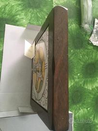 Orologio da parete moderno, mai usato, con la sua scatola. in ceramica con bordo in legno massello con gancetto per appendere. Ceramica di pregio numerata.