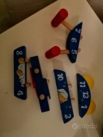 Orologio doppia faccia in legno Winnie the Pooh e tigro con lancette regolabili. Alto cm. 15