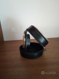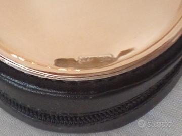 Orologio da tavola e da viaggio Sveglia rotondo elegante con chiusura zip. Coperchio con laminato in argento In ottimo stato.
