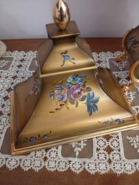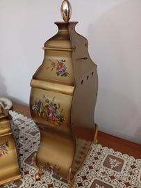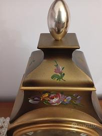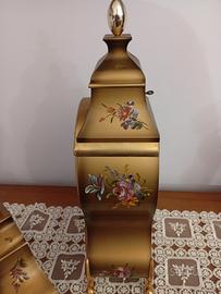 orologio con pendolo e mensola per appoggio murale dipinti floreale e particolari dorati movimento meccanico a carica manuale funzionante e chiave in dotazione
