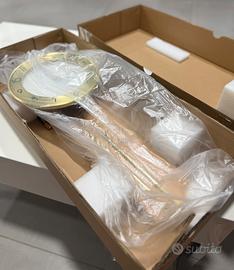 Orologio da parete con pendolo radio, pannello posteriore in legno impiallacciato, aste in ottone. Nuovo.