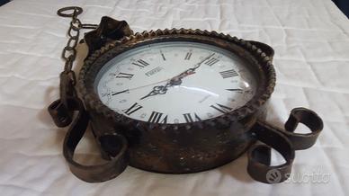 Orologio in ferro battuto con diametro di 20 cm. circa e uno spessore di 6cm. circa funziona a pila. non spedisco.