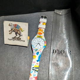 Orologio D'Hour unisex in eccellenti condizioni con motivo pesci e pesce pagliaccio. Batteria da sostituire. Dimensione quadrante 33 mm.