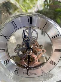 Orologio Ottaviani Home da tavolo, forma tonda in cristallo con movimento a vista, e base in cristallo. Misura: 16,8 x13,6x6.