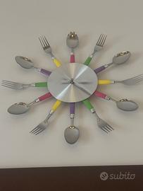 Originale orologio da parete realizzato con posate colorate.