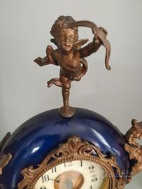 orologio antico da mobile...smaltato col. blu...con angeli ...purtroppo non è funzionante molto bello ..decorativo...e pesante...non so di quale materiale siano gli angeli... alto cm.69 e nella parte del quadrante la più larga è cm.26