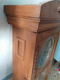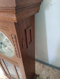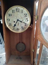 Orologio da parete a pendolo degli anni 1930/40. Batte le ore e un solo colpo per la mezz'ora. Misure cm. 80x30x18 Vetri originali. Carica manuale settimanale.
