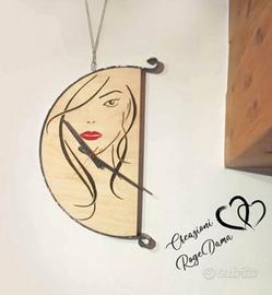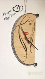 Vendo orologio da muro da 50 cm con volto stilizzato inciso su legno di betulla e acciaio con meccanismo silenzioso