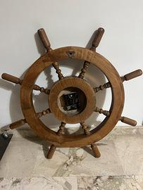 Vendo orologio da parete stile nautico a forma di timone, in legno massello, con quadrante classico e movimento al quarzo.