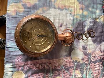 Vendo per Trasferimento Orologio vintage, antico in rame lavorato da muro ottime condizioni e funzionante.