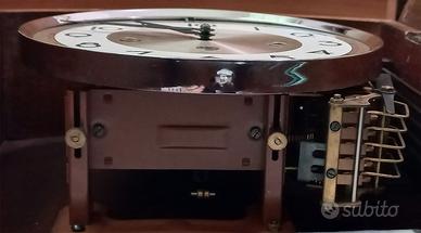 VENDO orologio a pendolo JANCH made in Germany 1972, viteria a testa taglio dell'epoca, meccanico, NO BATTERIA, suoneria WESTMINSTER dissattivabile, carica a molla con chiave e bolla di registro, cassa in legno colore noce lucido, portello anteriore in vetro ( no plastica ) con chiusure laterali a gancio.