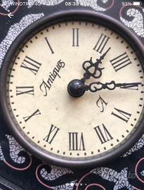 Vecchio orologio a batteria funzionante in stile antico retró. carcassa in legno decorata,una ammaccatura visibile in foto. funzionante con batteria AAA ( compresa).