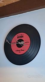 Particolare orologio da parete a giradischi Vinile con lancette in metallo NUOVO. Design originale e look retrò "vinile " Meccanismo al quarzo silenzioso Incluso batteria