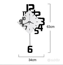 Design a Pendolo Creativo: Il numero "6" in basso non è fisso, ma funge da pendolo oscillante. Si muove a destra e a sinistra mentre l'orologio è in funzione. Composizione Visiva: I numeri sono disposti in modo sparso e asimmetrico ("disordine ordinato") per creare un effetto visivo dinamico, rompendo la forma classica del cerchio. Anti-rust Paint Pointer: Le lancette (puntatori) sono trattate con una vernice antiruggine per durare nel tempo e non rovinarsi con l'umidità.