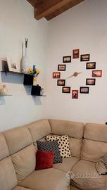 Vendo orologio da parete decorativo e originale, composto da lancette centrali color bronzo e da 12 quadretti fotografici disposti in cerchio che sostituiscono i numeri delle ore.